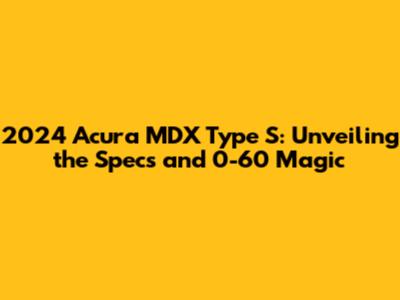 Alright, car enthusiasts, buckle up! We're diving deep into the 2024 Acura MDX Type S, a vehicle that's turning heads and igniting passions in the luxury SUV market. If you're anything like me, you're always itching to know the nitty-gritty details, especially the performance specs and that all-important 0-60 mph time. So, let's get down to business and explore what makes the MDX Type S a force to be reckoned with. This isn't just another SUV; it's a statement. It's about performance, luxury, and a driving experience that'll leave you grinning from ear to ear. I mean, who doesn't love a vehicle that delivers both practicality and a thrill? The MDX Type S promises exactly that, blending Acura's renowned build quality with a healthy dose of adrenaline. We're going to break down everything from the engine and horsepower to the features that make this SUV a standout. So, grab your favorite beverage, and let's get started.