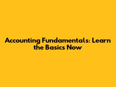 Accounting Fundamentals: Learn The Basics Now