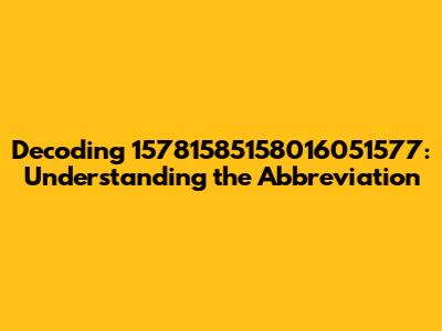 Decoding 15781585158016051577: Understanding The Abbreviation
