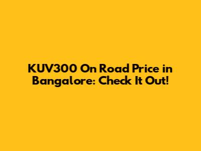 As of the latest data, the on-road price for the base model of the KUV300 in Bangalore could range from ₹7.5 lakhs to ₹8.5 lakhs. For the higher-end models with more features, the on-road price could be between ₹9 lakhs and ₹10 lakhs. These prices include the ex-showroom price, registration charges, insurance, taxes, and other miscellaneous fees. To get the most accurate price, it's best to contact your local Mahindra dealer and get a personalized quote.