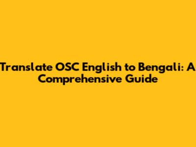 Translate OSC English To Bengali: A Comprehensive Guide