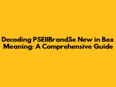 Unveiling The Meaning Of PSEIIBrandSe 'New In Box'
